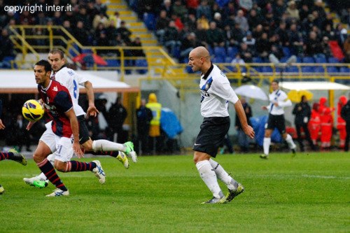 Perdonati insomma, tanto più che Ranocchietta aveva emulato il Samuel versione derby, capocciando sul secondo palo il millimetrico cross del Cuchu e portandoci in vantaggio, dopo aver spedito fuori di pochissimo il colpo di testa su corner precedente. Oltretutto là davanti, pur nella penuria di piedi buoni, Milito-Palacio-Cambiasso giostrano sapienti, affondando chirurgicamente nella lasagnosa difesa felsinea. Ando’ è in panchina fino a metà ripresa, dopo essere stato strombazzato titolarissimo nelle dichiarazioni della vigilia; anche in questo, Strama dimostra di padroneggiare le manfrine di pre-tattica come il milgior decano degli allenatori italici. Dalla mia modesta prospettiva, avevo in realtà subodorato la panca per Fantantonio, dopo che giovedì si era sciroppato più di un’ora contro il Partizan, oltretutto con l’amata Samp in arrivo mercoledì a San Siro.