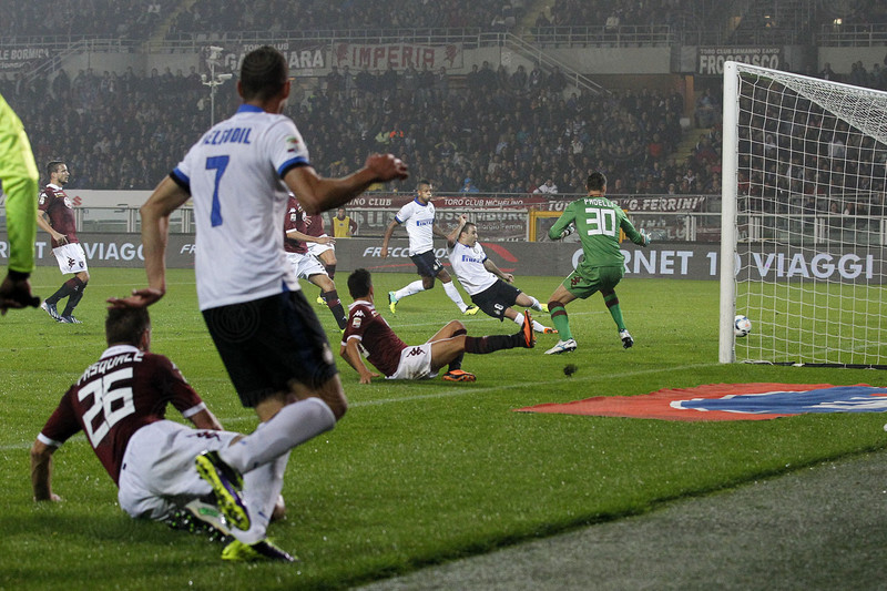 Avendo appreso quasi incredulo della presenza di Palacio in attacco, nonostante la zampa malconcia ed il doppio impegno in Nazionale oltreoceano, mi faccio scivolare addosso le assenze di Campagnaro (tornato sano anche lui ma stiratosi in allenamento ieri) e Alvarez (congedato dal ritiro argentino per curarsi, e puntualmente in tribuna ieri sera). Nemmeno il tempo di prender posto tra i pali che Handanovic vede San Pietro sul secondo palo respingergli il diagonale velenoso di Cerci. Scampato pericolo? Macchè: il nostro due minuti dopo esce a valanga sull’11 granata che tocca la palla quel tanto da essere travolto dal portiere. Rigore ineccepibile per tutti – non per me, spiegherò infra – e soprattutto rosso per il nostro portiere. 86 minuti da giocare in 10, per fortuna ancora sullo 0-0 visto che il nuovo entrato Carrizo bagna il suo esordio con la paratona dagli undici metri.