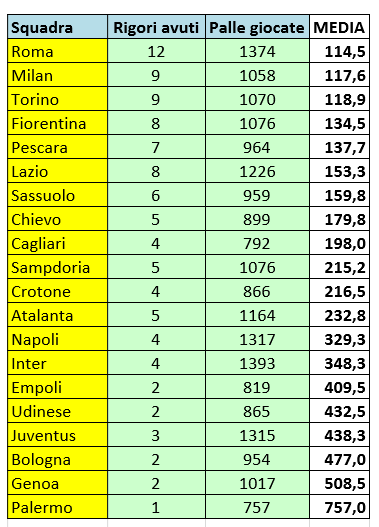 I cugini, tanto per tirare in ballo sempre gli stessi, sono a un rigore ogni 117, con 300 palloni in meno giocati in area, ma loro -si sa- propongono giUoco.