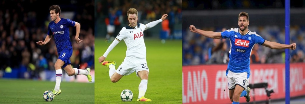 I tre ruoli sono noti: esterno sinistro, centrocampista, punta da panchina. In ordine di importanza, per me i tre nomi sono: Marcos Alonso, Eriksen, Llorente, e spiego il perchè: